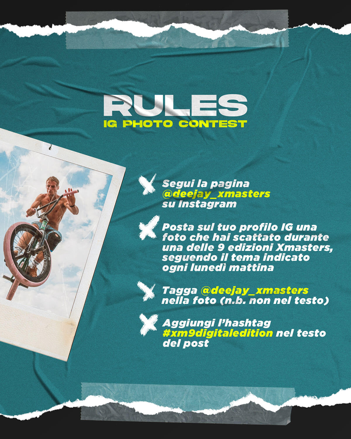 Due Foto verranno scelte dal Team Xmasters e la terza sarà quella che avrà ottenuto più like su IG in quella settimana.